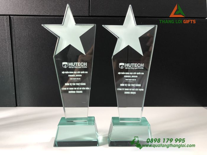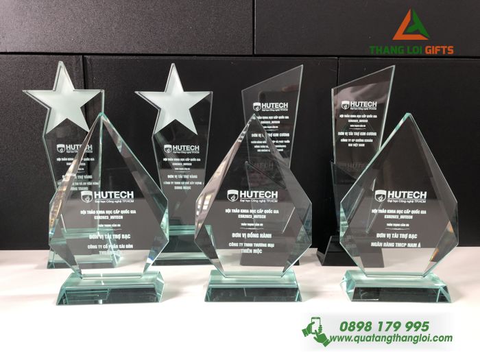 Bài viết: Cúp pha lê – In nội dung khen tặng Tri ân đối tác Trường HUTECH
