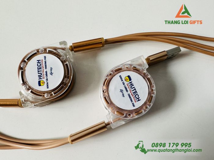 Dây Cáp Sạc 3 Đầu – In Logo Trường ĐH HUTECH: Bộ Quà Tặng Đẳng Cấp Cho Doanh Nghiệp Thành Công