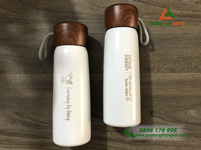 Tạo Ấn Tượng Với Món Quà Tặng Sang Trọng: Bình Giữ Nhiệt Trắng Vân Gỗ- Khắc logo Home Credit, Learning by Doing
