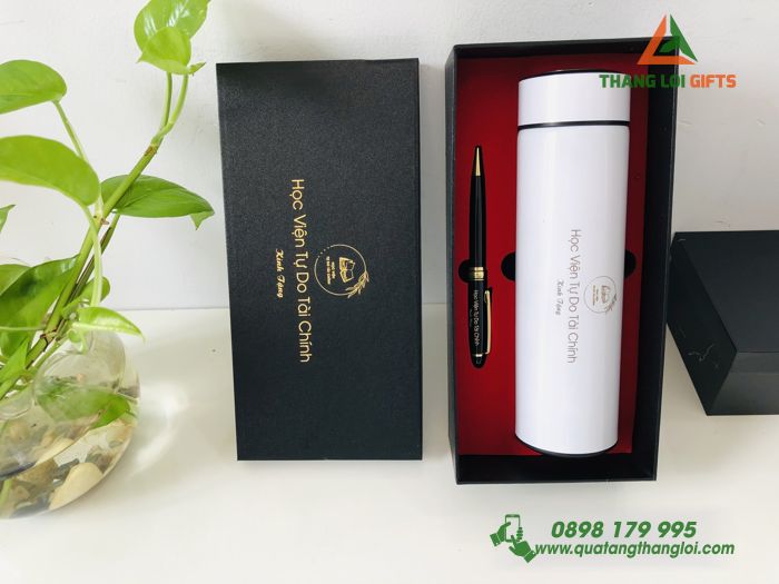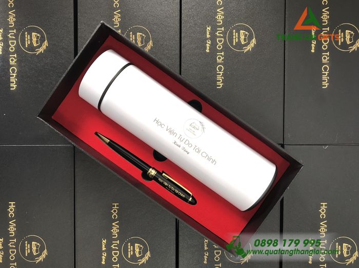 Bài viết: Bộ quà tặng Giftset (Bình & Bút) In Khắc Logo Học Viện Tự Do Tài Chính