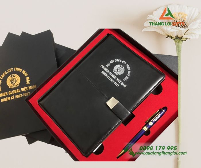Chúng tôi rất vui được giới thiệu đến bạn một sản phẩm độc đáo và sang trọng, Bộ Quà Tặng (Sổ tay da bìa còng + Bút kim loại) khắc logo Premier Global. Sản phẩm này không chỉ đơn thuần là một món quà, mà còn là biểu tượng của sự tôn trọng và quan tâm. Bạn sẽ được trải nghiệm sự đẳng cấp và tính cá nhân hóa tuyệt vời thông qua những sản phẩm này.