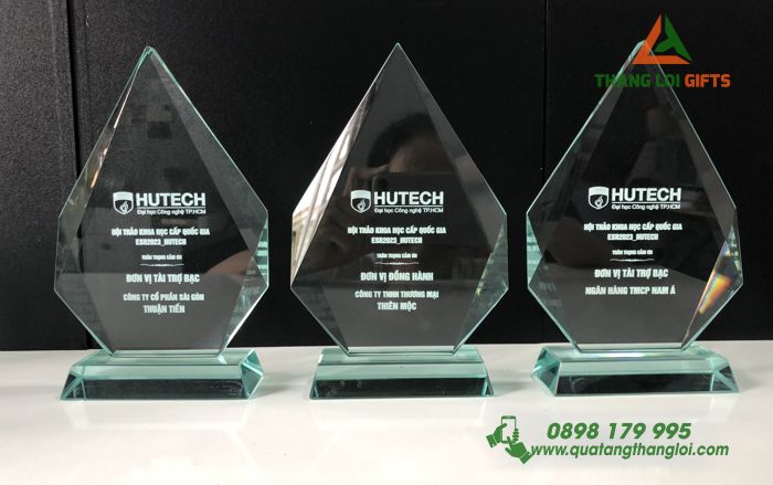 Bài viết: Cúp pha lê – In nội dung khen tặng Tri ân đối tác Trường HUTECH