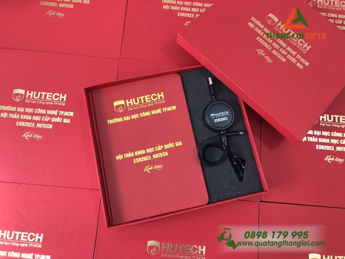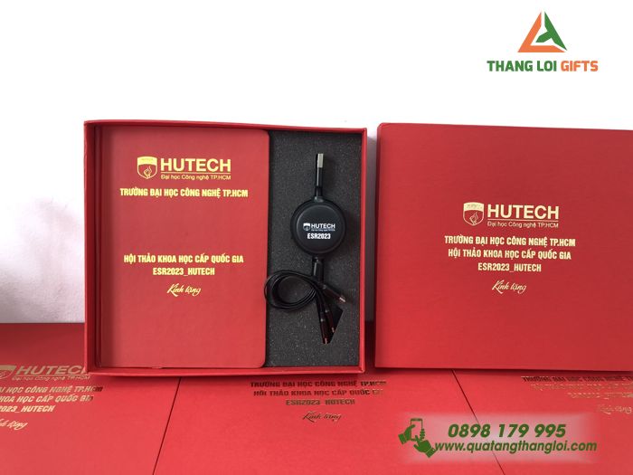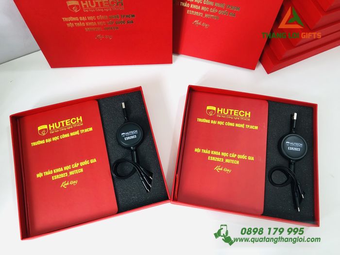 Bài viết: Khám Phá Giftset (Sổ tay & Sạc ba đầu) – In logo Trường ĐH HUTECH