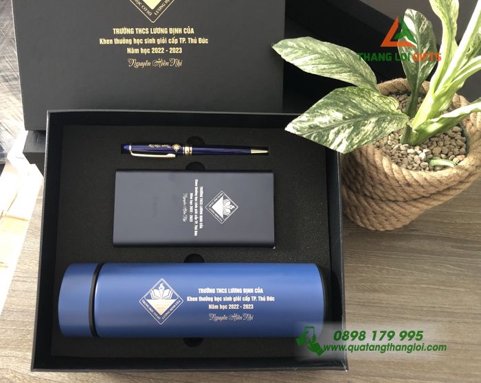 Tự Hào Giới Thiệu Bộ Quà tặng học sinh giỏi (Bình giữ nhiệt+Pin sạc dự phòng XIAOMI+ Bút ký) – Khắc logo Trường Lương Định Của- Đối Tác Đắt Giá Của Sự Thành Công