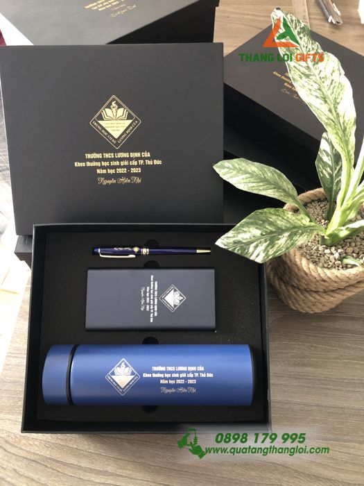 Tại Công Ty Quà Tặng Thắng Lợi, chúng tôi luôn không ngừng tìm kiếm những cách để chúng ta có thể thể hiện lòng biết ơn và đánh dấu những khoảnh khắc quan trọng trong cuộc sống và sự nghiệp. Chính vì vậy, chúng tôi tự hào giới thiệu sản phẩm Quà tặng học sinh giỏi (Bình giữ nhiệt+Pin sạc dự phòng XIAOMI+ Bút ký) – Khắc logo Trường Lương Định Của, món quà tinh tế mang trong đó sự chăm sóc và tri ân đặc biệt.